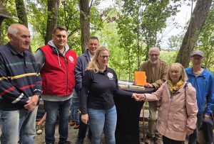 Schneider, TU Bergakademie Freiberg, Geologisches Institut, Bereich Paläontologie/Stratigraphie. Herr Prof. Schneider war persönlich zur Übergabe vor Ort und konnte in diesem Rahmen auch die wissenschaftliche Bedeutung des Fundes erläutern. Gleichzeitig fand das Höhlenfest statt, welches wieder großen Zuspruch fand. Auch ich konnte der feierlichen Übergabe beiwohnen und eine Zuwendung an den Dorf- und Heimatverein Dienstedt & Oesteröda e.V. in Höhe von 200,00 € überreichen.